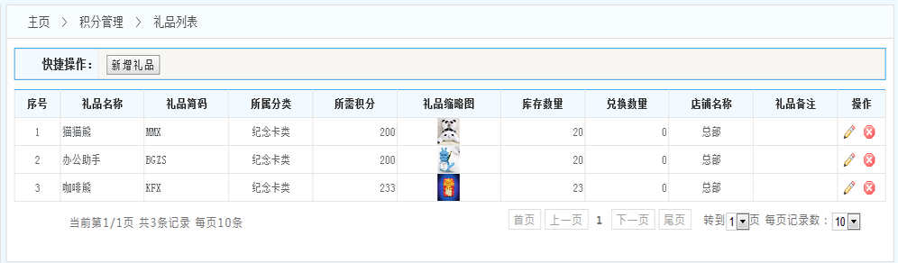 禮品列表:展示系統(tǒng)中所有類別的禮品