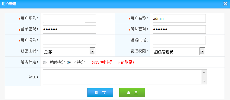 6.所屬店鋪:選擇添加的用戶所屬的店鋪