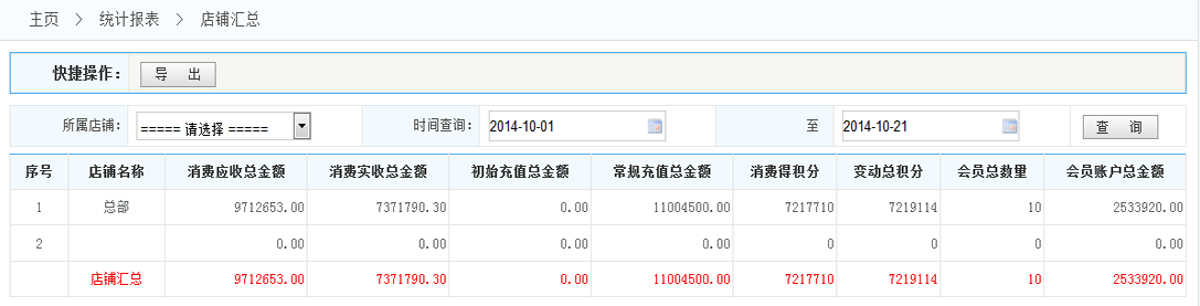 -> 五通一卡通云會員管理系統(tǒng)店鋪匯總統(tǒng)計
