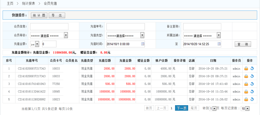 充值統(tǒng)計:查看會員充值記錄