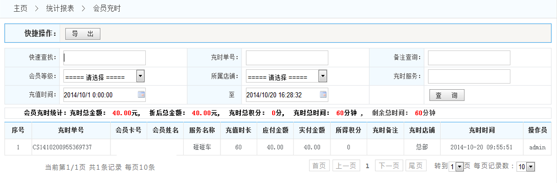 充次統(tǒng)計(jì):查看會(huì)員充時(shí)記錄