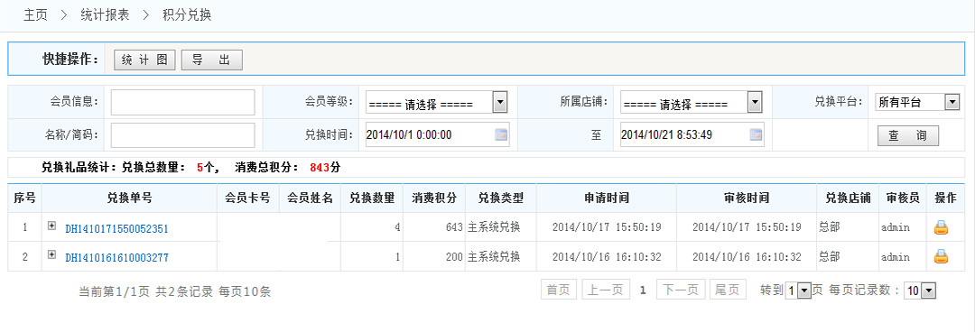 3.兌換禮品統(tǒng)計:將統(tǒng)計在滿足設定的條件下的所有兌換禮品的概況