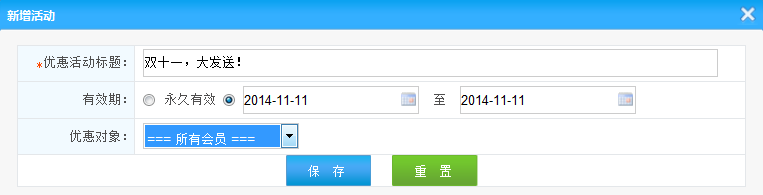 2.優(yōu)惠活動期限:設(shè)置這次活動的期限,可以長期有效,也可以一段時間有效