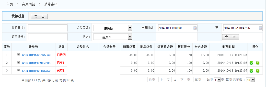 消費審核:查看商家網(wǎng)站消費審核信息