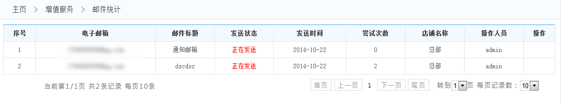 郵件統(tǒng)計(jì):顯示郵件發(fā)送列表.
