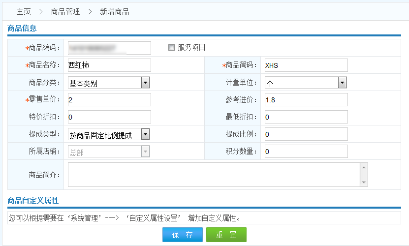 新增商品:進(jìn)入新增商品信息填寫列表, 如下圖:
