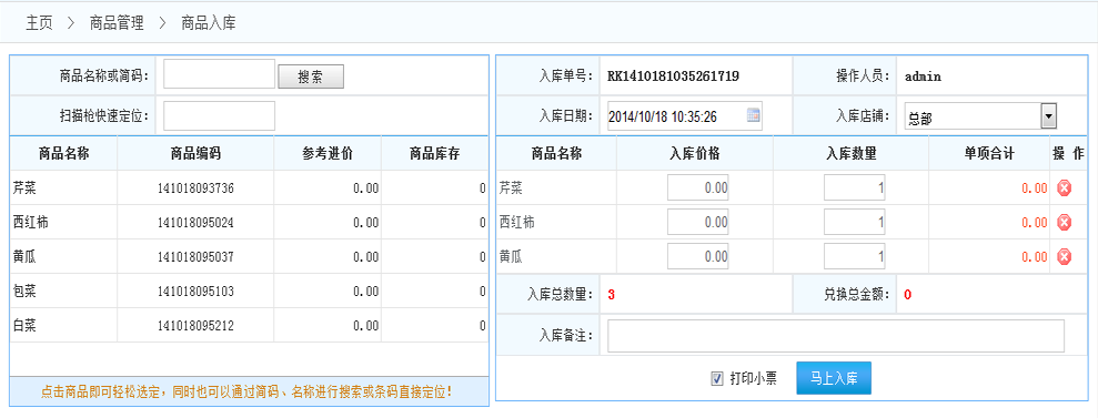 3.入庫列表:檢查入庫列表,可以修改數(shù)量及入庫價格,也可以將商品從入庫列表中移除