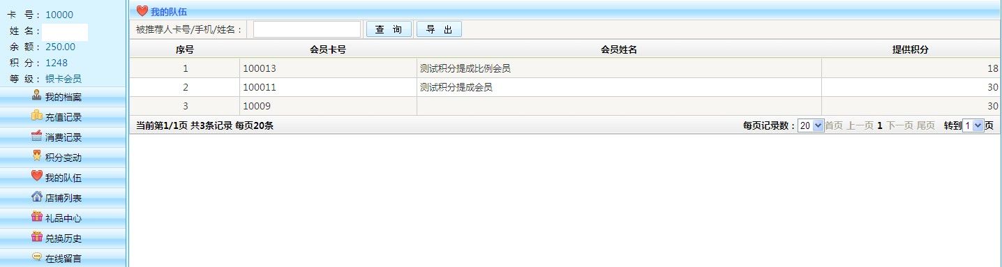 我的隊伍里面的會員,在系統(tǒng)中消費 充值等操作時 自己會有積分提成