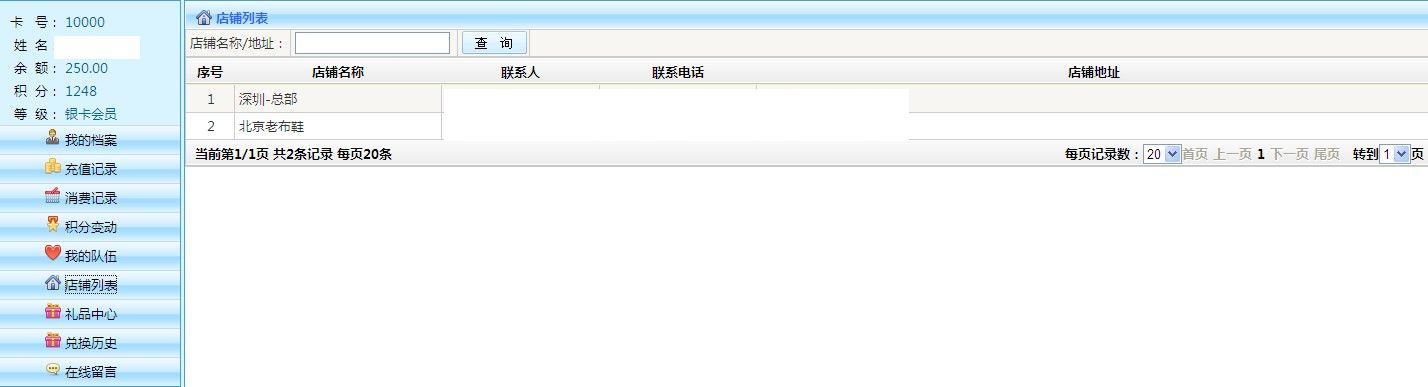 查詢:可以根據(jù)店鋪名稱 店鋪地址等條件查詢出單個店鋪