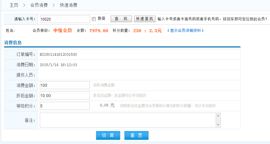 可通過(guò)刷卡來(lái)定位到具體的會(huì)員